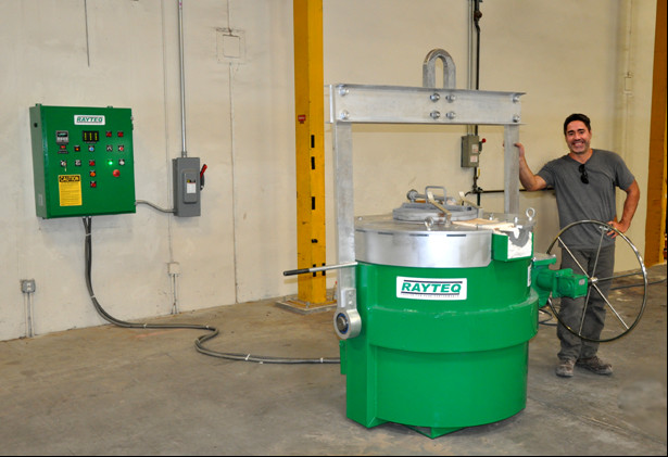 Rayteq's new high-powered, compact electric furnaces paired with advanced hybrid digital/analog power controls slash energy costs by melting aluminum or magnesium right at the die casting machine or molding line, eliminating wasteful energy losses from hot metal transportation, launders and holding furnaces in central melt systems. Additional advantages include higher energy efficiency, less metal loss, fewer scrapped castings, no operator heat stress, and no noise, all while virtually eliminating air quality issues. High furnace melting rates in a compact space are made possible by Rayteq's unique high power density heating elements featuring new life-enhancing materials technology. Rayteq also supplies exact heating element replacements to incorporate this new technology into older electric furnaces.