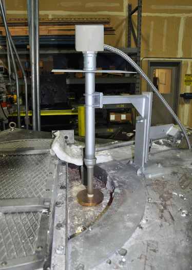 Paces operator additions of charge material for improved temperature control. Helps prevent dangerous overfilling of holding furnaces. Controls operation of automatic ingot loaders. Operates at temperatures up to 1400° F (760° C). Recommended for molten aluminum, zinc, tin, bismuth and similar metals.