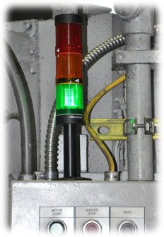 In the above video, you can see the light bar positioned near the top of the machine. When the metal level drops to the point where an ingot can be added, the light bar turns amber. If an ingot is not added quickly enough, the light bar will turn red and be accompanied by a loud buzz.